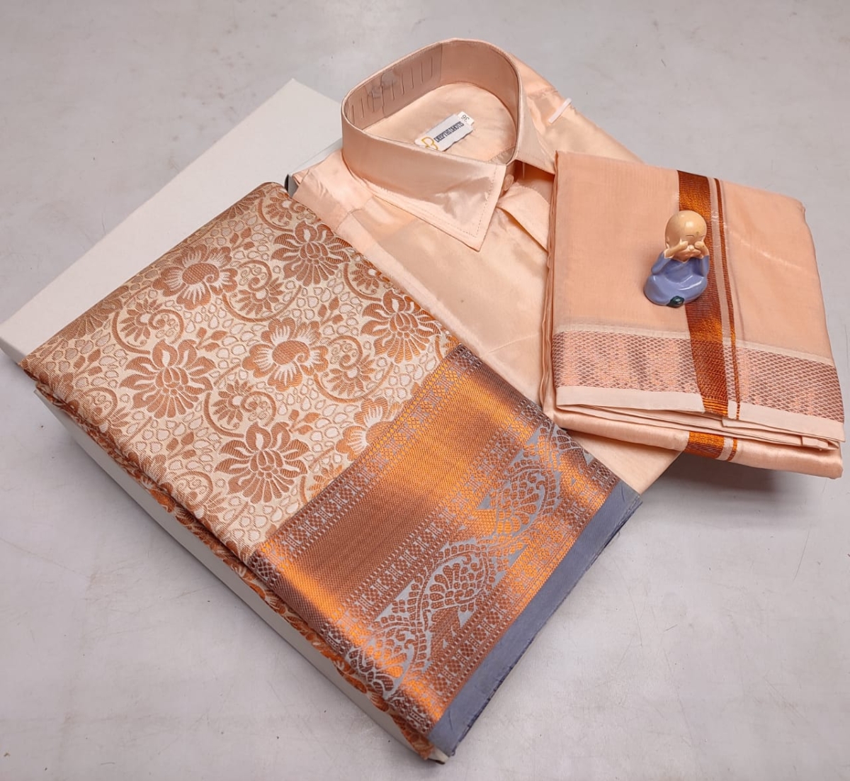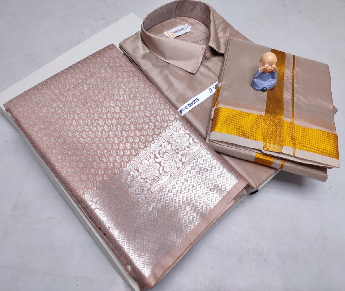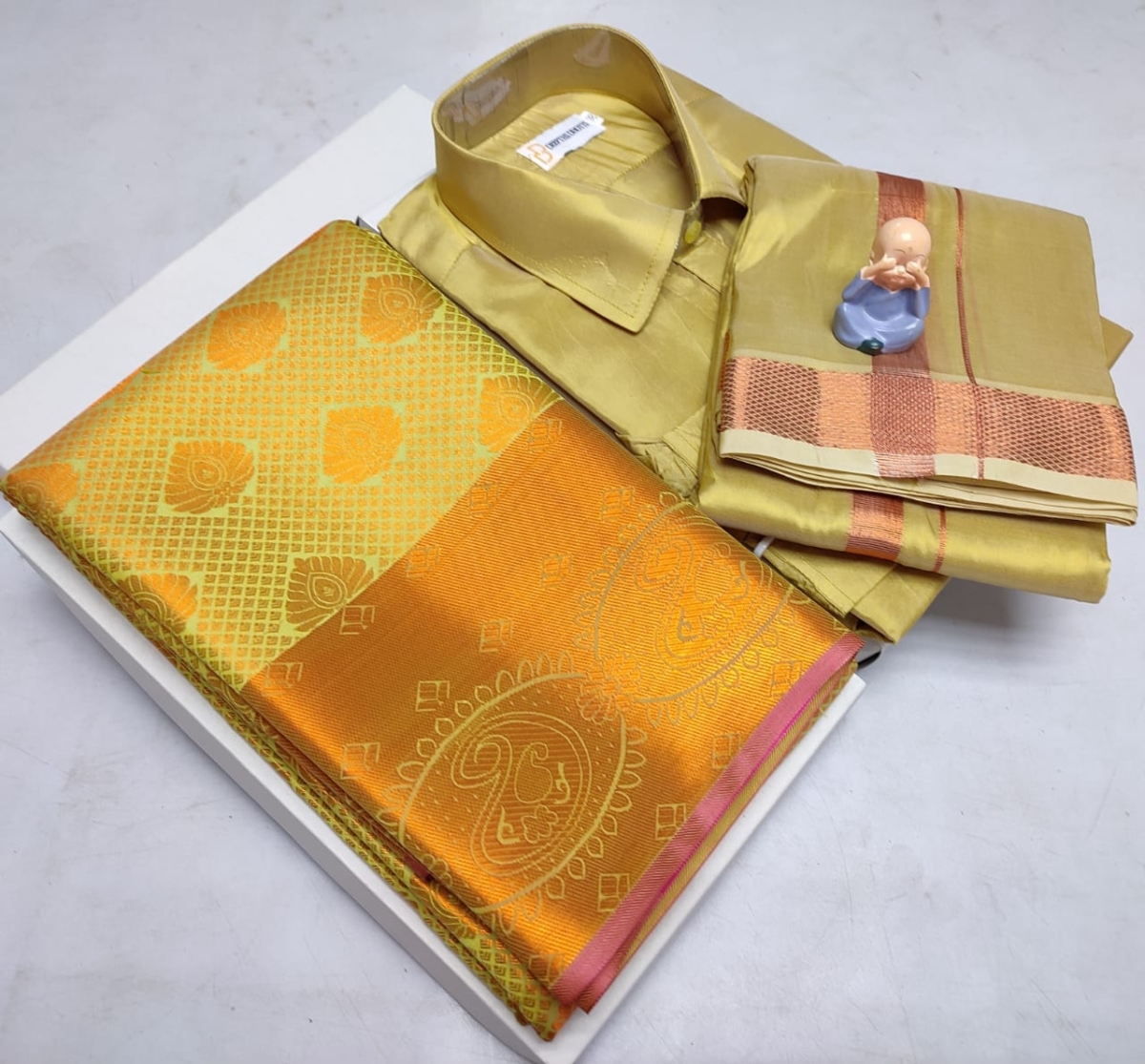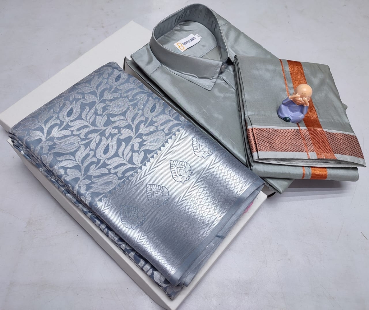 🌹🌹 *Premium silk Couple combo set (Shirt – Dhoti + Bridal semi silk sarees)*🌹🌹