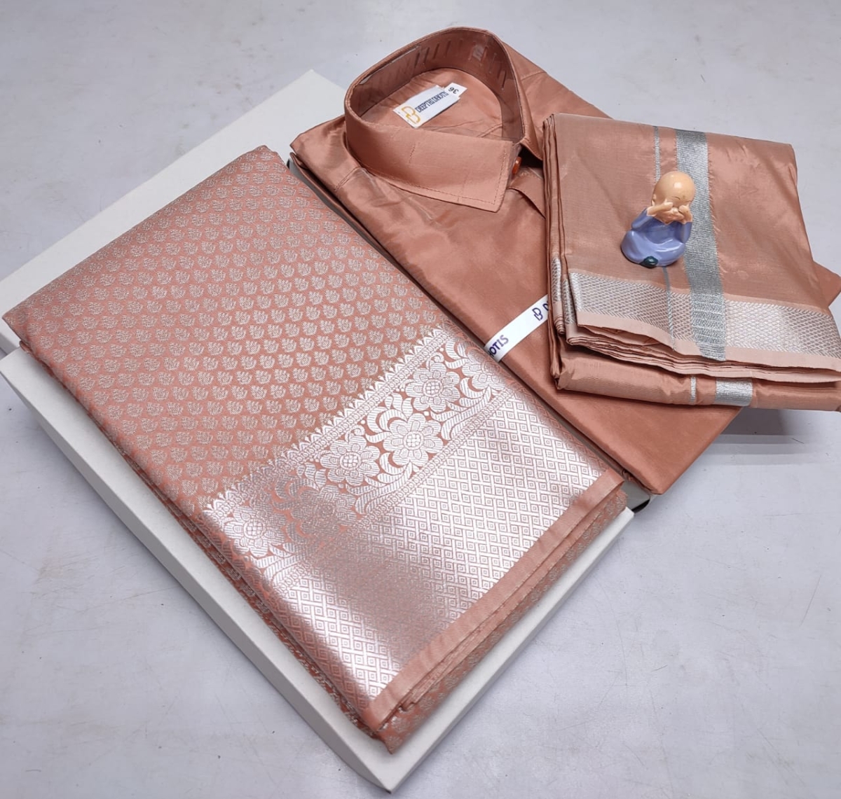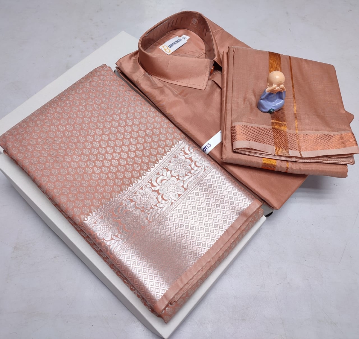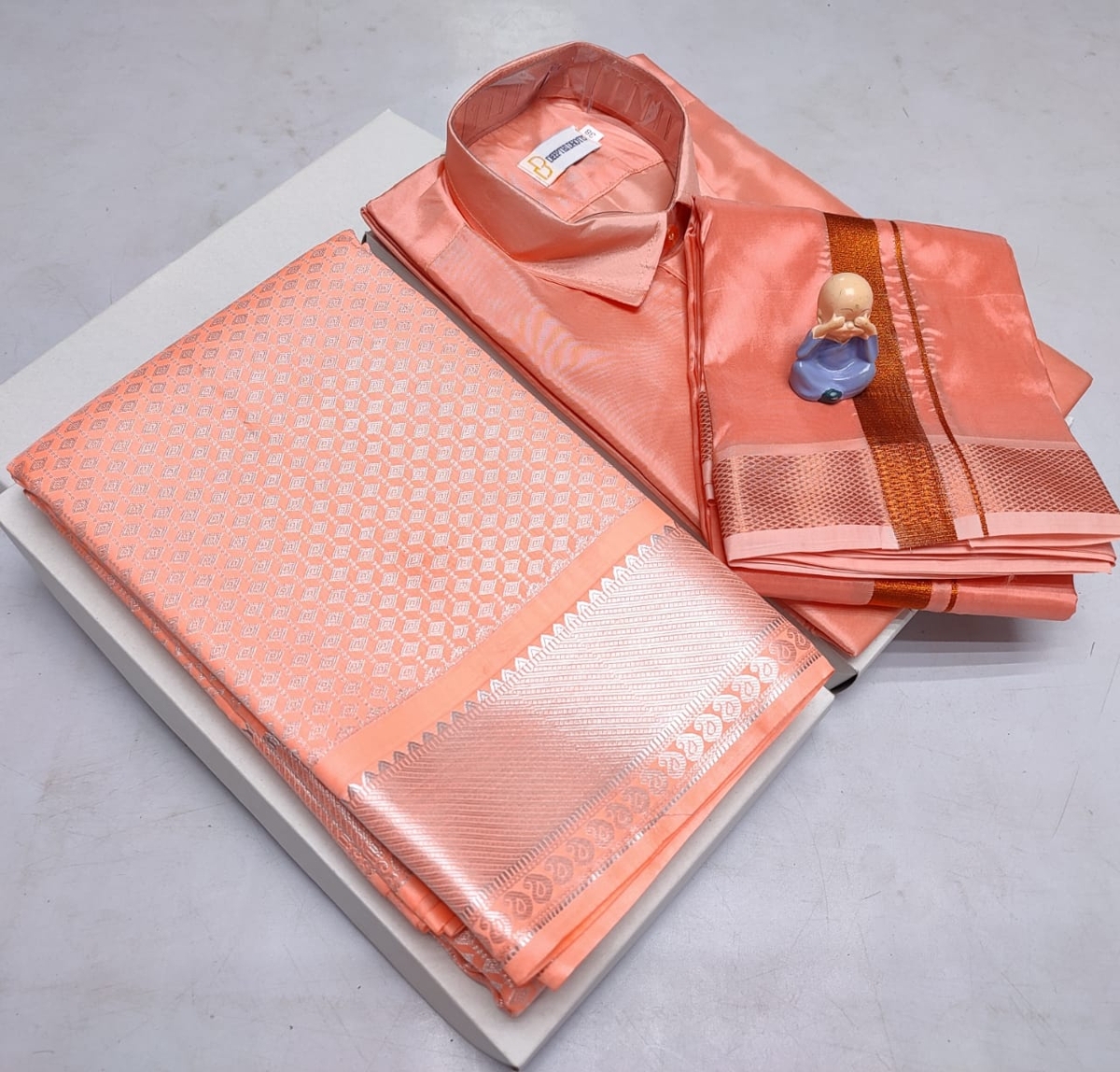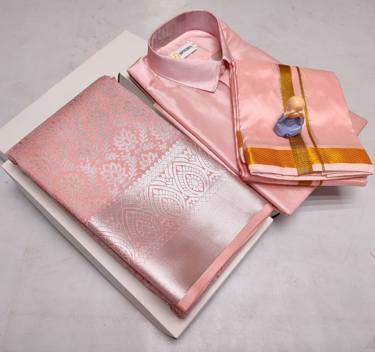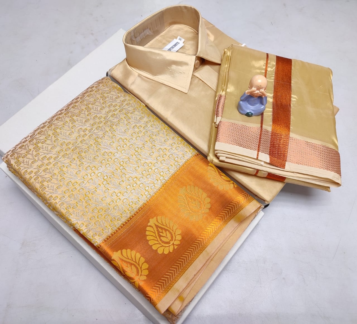 🌹🌹 *Premium silk Couple combo set (Shirt – Dhoti + Bridal semi silk sarees)*🌹🌹