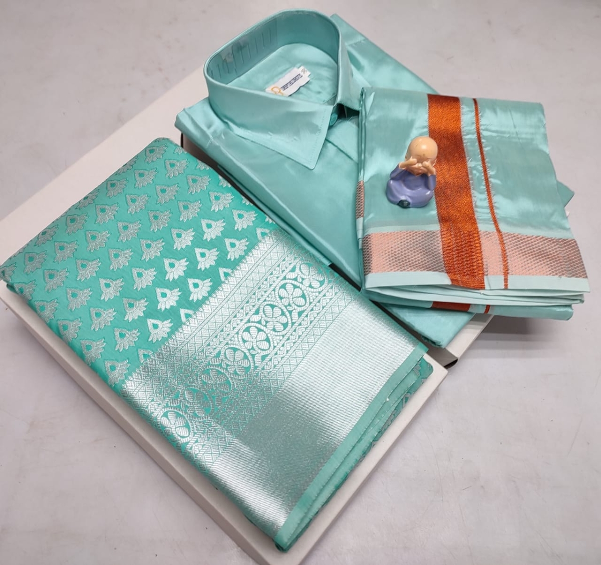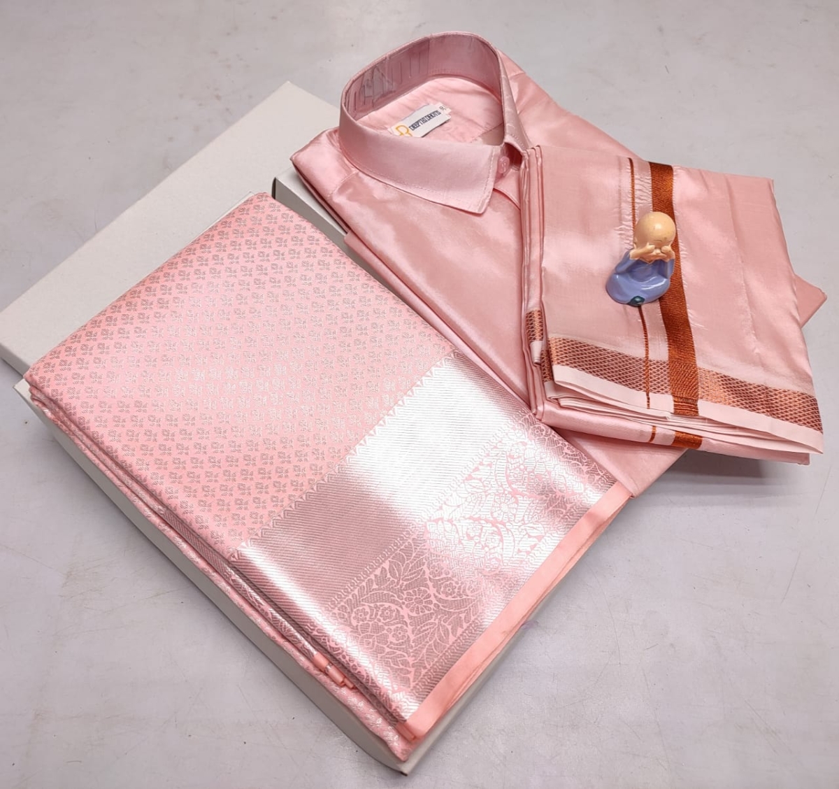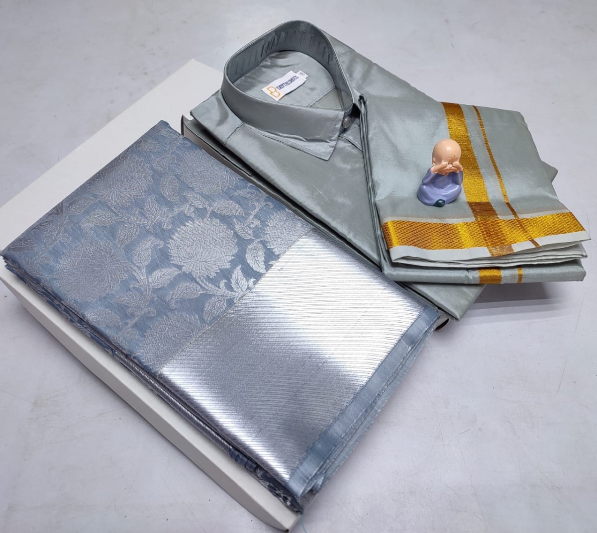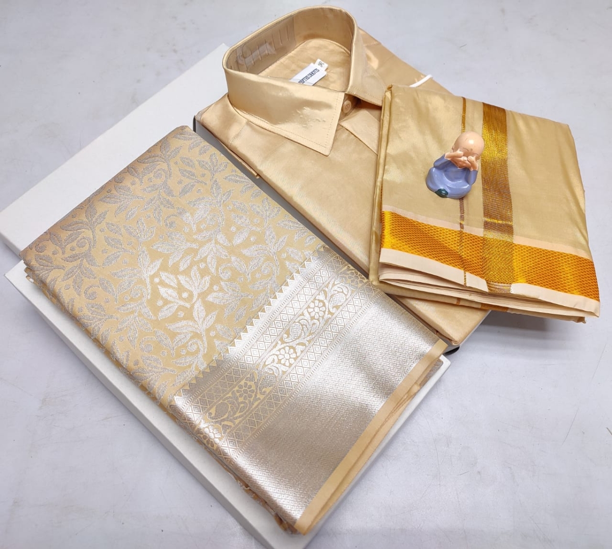 🌹🌹 *Premium silk Couple combo set (Shirt – Dhoti + Bridal semi silk sarees)*🌹🌹