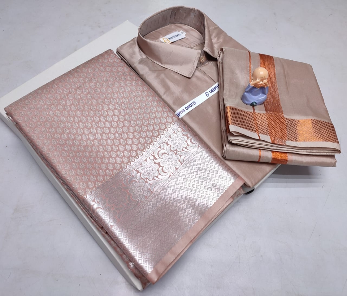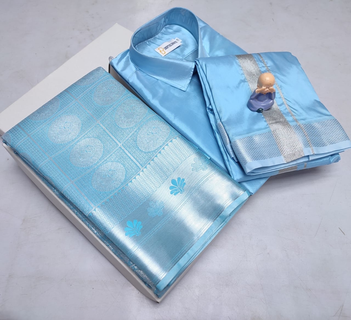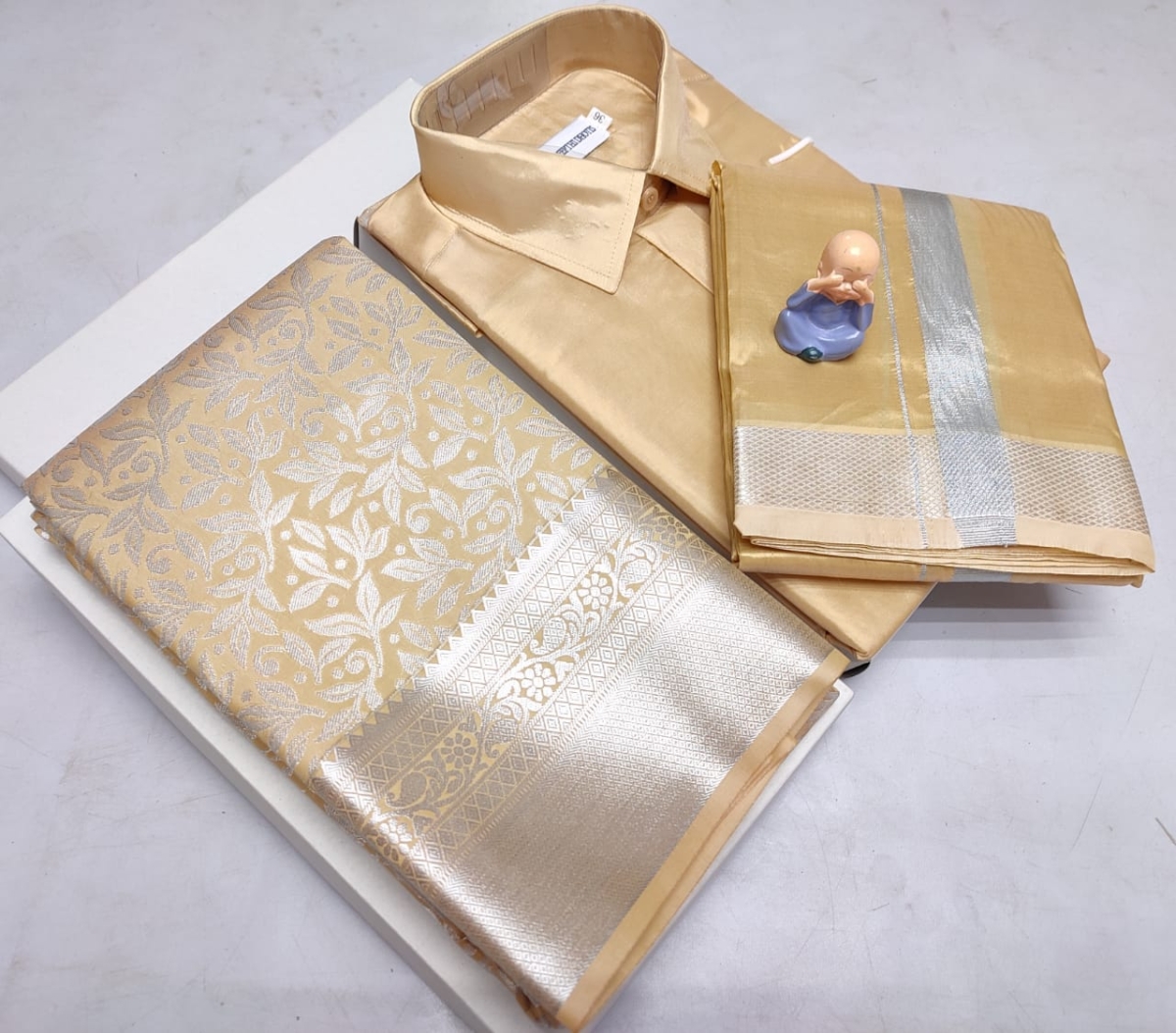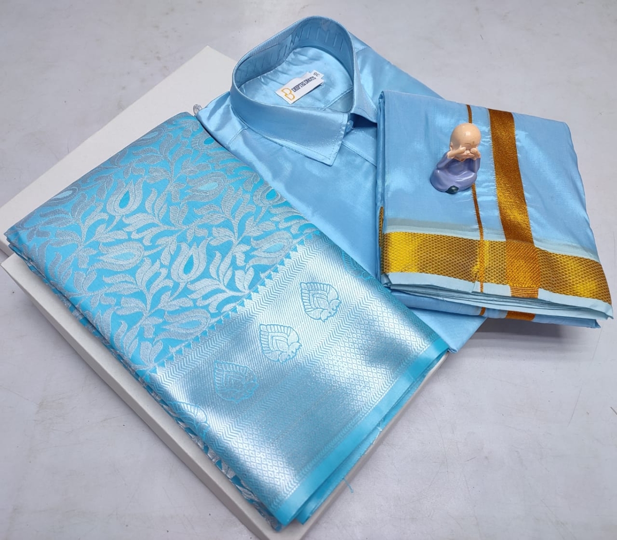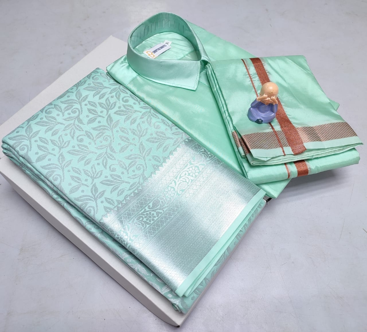 🌹🌹 *Premium silk Couple combo set (Shirt – Dhoti + Bridal semi silk sarees)*🌹🌹