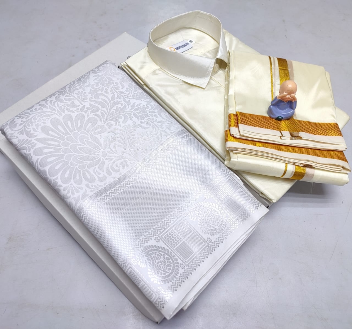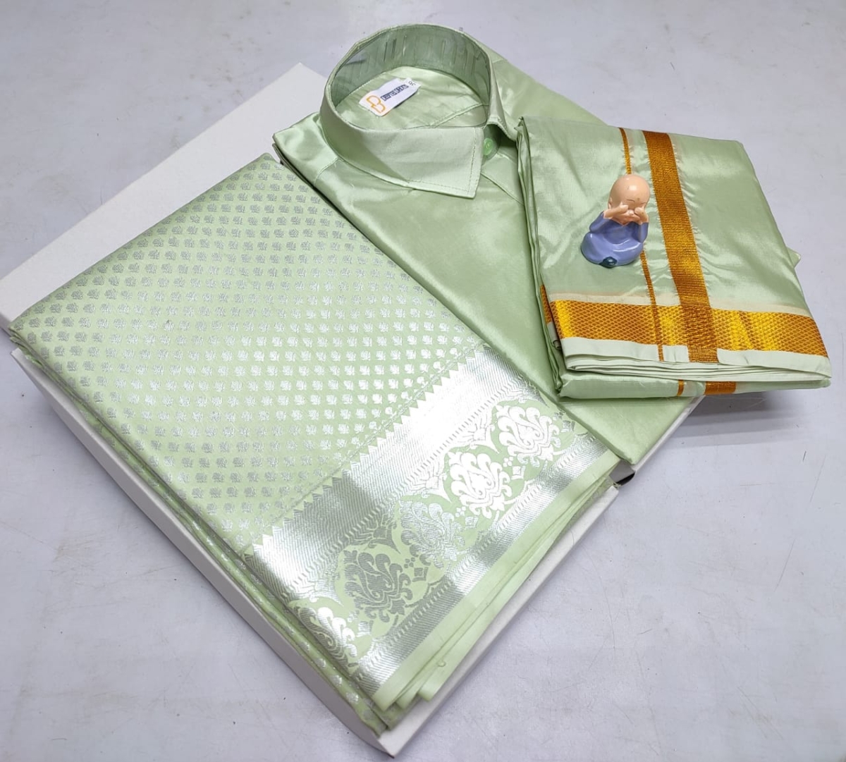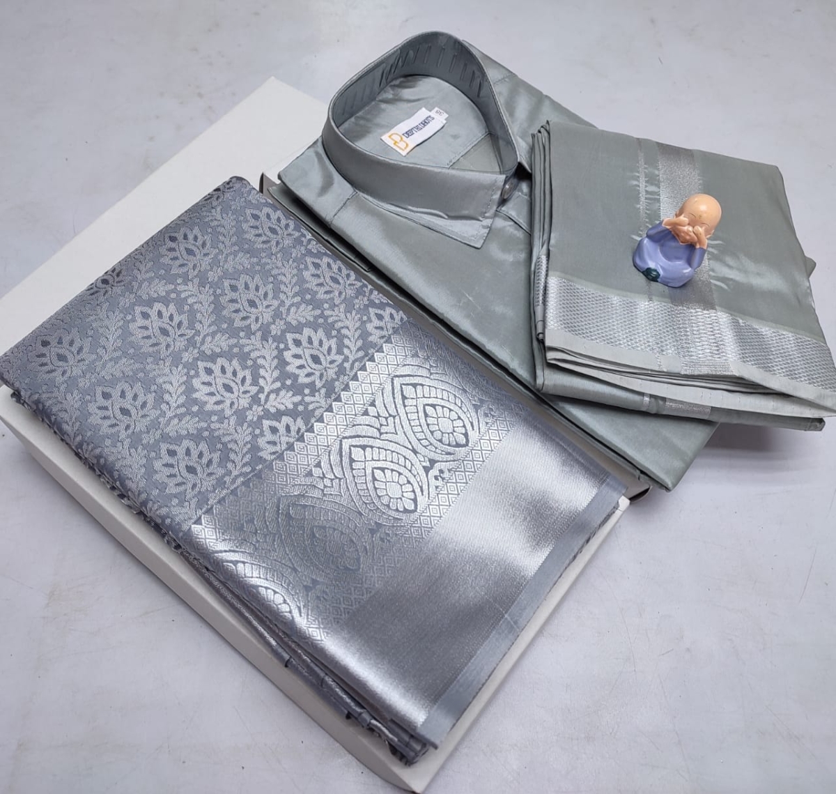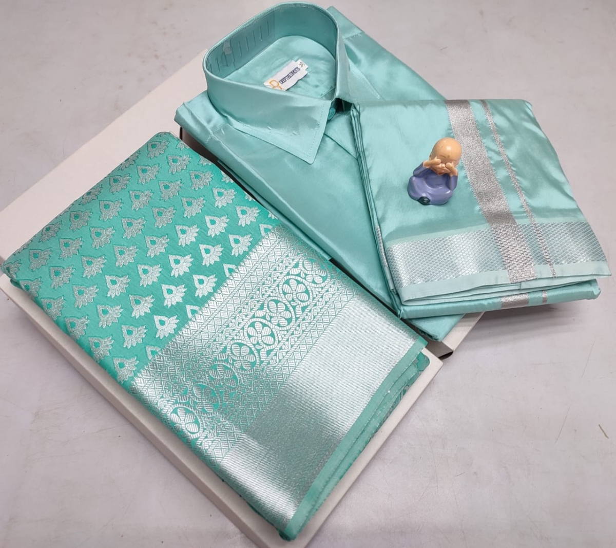 🌹🌹 *Premium silk Couple combo set (Shirt – Dhoti + Bridal semi silk sarees)*🌹🌹